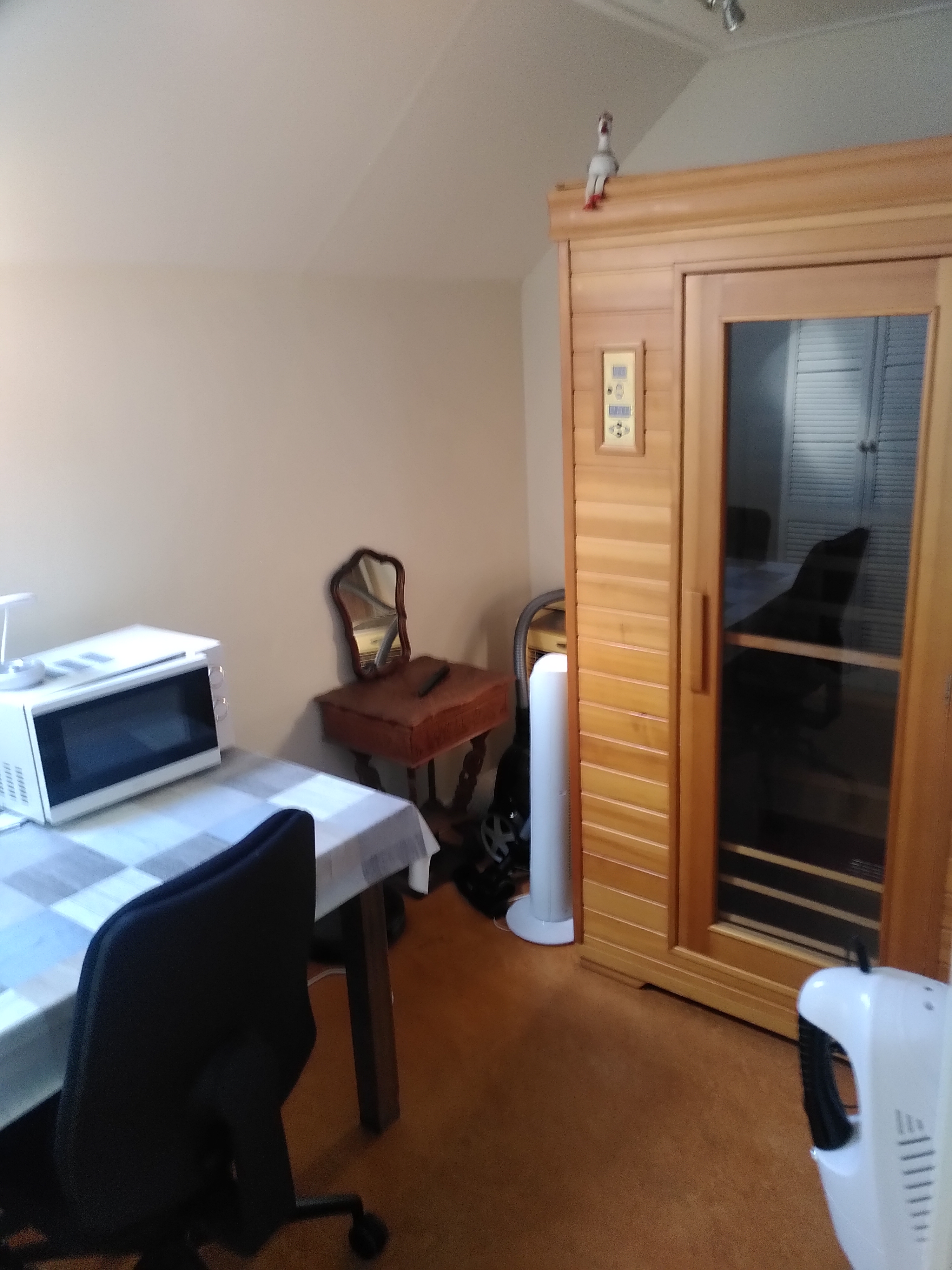 Ook is er een infrarood sauna aanwezig die u kunt gebruiken voor €5,00 extra per dag, er is een tafel om aan te werken en een kleine magnetron.